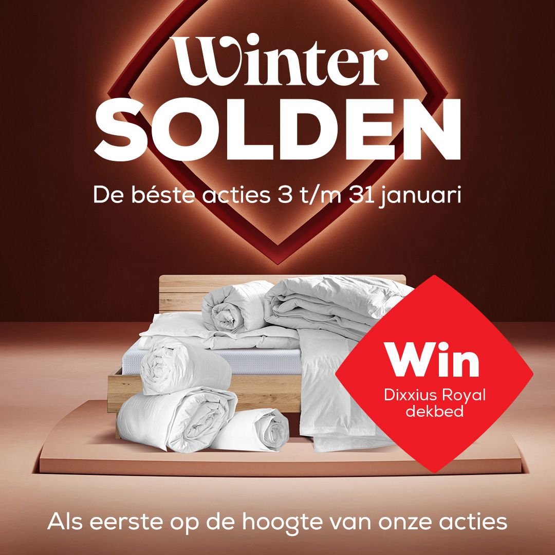 Solden komt er weer aan! Tijdens Solden ontvang je de beste kortingen op boxsprings, matrassen en meer. Wil jij als eerste op de hoogte zijn van de acties? Schrijf je dan onderaan deze pagina in op onze nieuwsbrief. En je maakt dan direct kans op een Dixxius Royal dekbed.